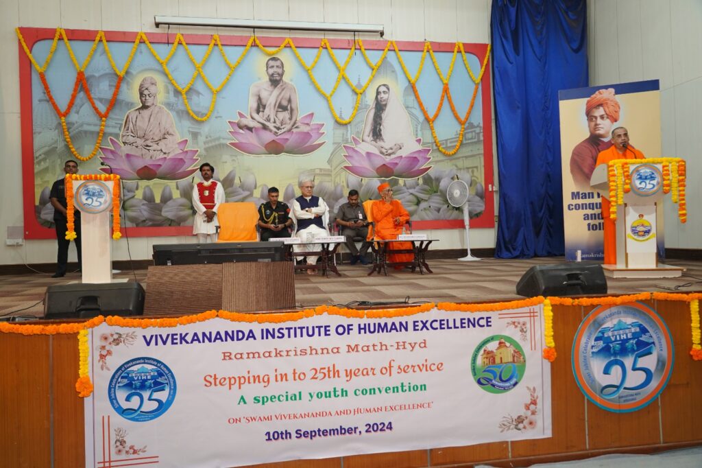 ఇరవై ఐదేళ్ళ క్రితం సెప్టెంబర్ 11 న హైదరాబాద్ రామకృష్ణ మఠంలో నాటి రామకృష్ణ మఠం, మిషన్ జాతీయ సర్వాధ్యక్షుడు స్వామి రంగనాథానంద వివేకానంద ఇన్స్టిట్యూట్ అఫ్ హ్యూమన్ ఎక్సలెన్స్ విభాగాన్ని ప్రారంభించారని హైదరాబాద్ రామకృష్ణ మఠం అధ్యక్షులు స్వామి బోధమయానంద చెప్పారు. ఇప్పటివరకు ఇరవై లక్షల మందికి పైగా యువత కు వ్యక్తిత్వ వికాసం, శీల నిర్మాణం, యోగ, ధ్యానం, కమ్యూనికేషన్ స్కిల్స్ లో శిక్షణ ఇచ్చామన్నారు. యువతకు విలువలను, నైపుణ్యాలను అందించేందుకు వి.ఐ.హెచ్.ఈ ఇరవై ఐదు ఏళ్లుగా పని చేస్తోందని చెప్పారు. కార్యక్రమం లో రామకృష్ణ మిషన్, మఠం జాతీయ ఉపాధ్యక్షుడు స్వామి సుహితానంద, డెక్స్ టెరిటీ గ్లోబల్ వ్యవస్థాపకుడు శరద్ సాగర్, వి.ఐ.హెచ్.ఈ ఫాకల్టీ సభ్యులు, వాలంటీర్లు, వివిధ కళాశాలల విద్యార్థులు పాల్గొన్నారు. ఈ సందర్బంగా కూచిపూడి నృత్యకళాకారిణి రాచర్ల నవ్య నేతృత్వంలో బాల్ వికాస్ విద్యార్థులతో నిర్వహించిన సాంస్కృతిక కార్యక్రమాలు అలరించాయి.
