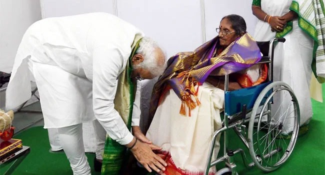 పసల కృష్ణభారతికి పాదభివందనం చేసిన ప్రధాని