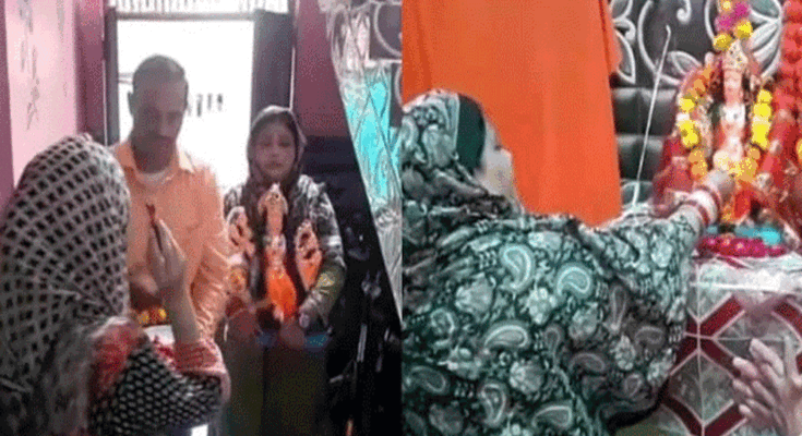 అలీఘడ్: దేవీ నవరాత్రి ఉత్సవాల్లో భాగంగా ఓ ముస్లిం బీజేపీ నేత తన ఇంట్లో దుర్గాదేవి విగ్రహాన్ని ప్రతిష్ఠించి పూజలు చేశారు. ఇదే ఆ నేతలకు పాలిట శాపంగా మారింది. కుటుంబాన్ని హతమారుస్తామంటూ దుండగుల నుంచి బెదిరింపులు వచ్చాయి. యూపీలోని అలీఘడ్కు చెందిన బీజేపీ నాయకురాలు రూబీ అసిఫ్ ఖాన్ తన ఇంట్లో దుర్గాదేవి విగ్రహాన్ని ప్రతిష్ఠించి కుటుంబసభ్యులతో కలిసి పూజలు చేశారు. అయితే ఇది ఇస్లాం మతానికి విరుద్ధమని అందువల్ల ఆమెను, కుటుంబాన్ని హతమారుస్తామంటూ బెదిరింపులు వచ్చాయి. అంతేకాదు బెదిరింపులతో పోస్టర్లు, కరపత్రాలు వేశారు.