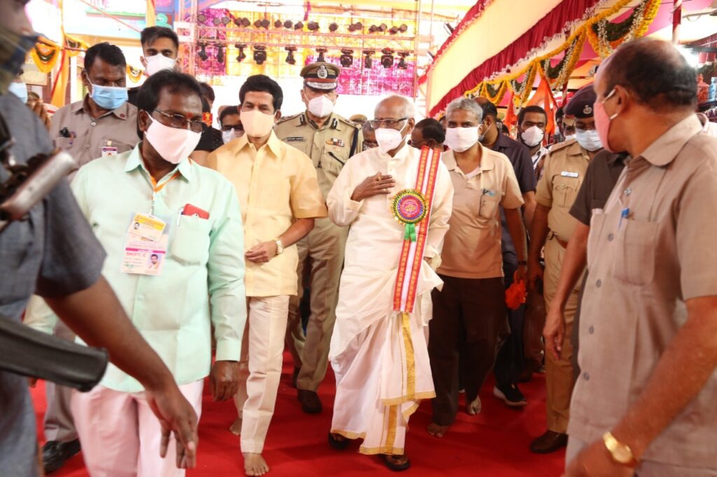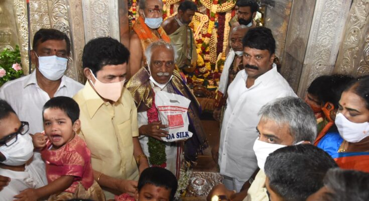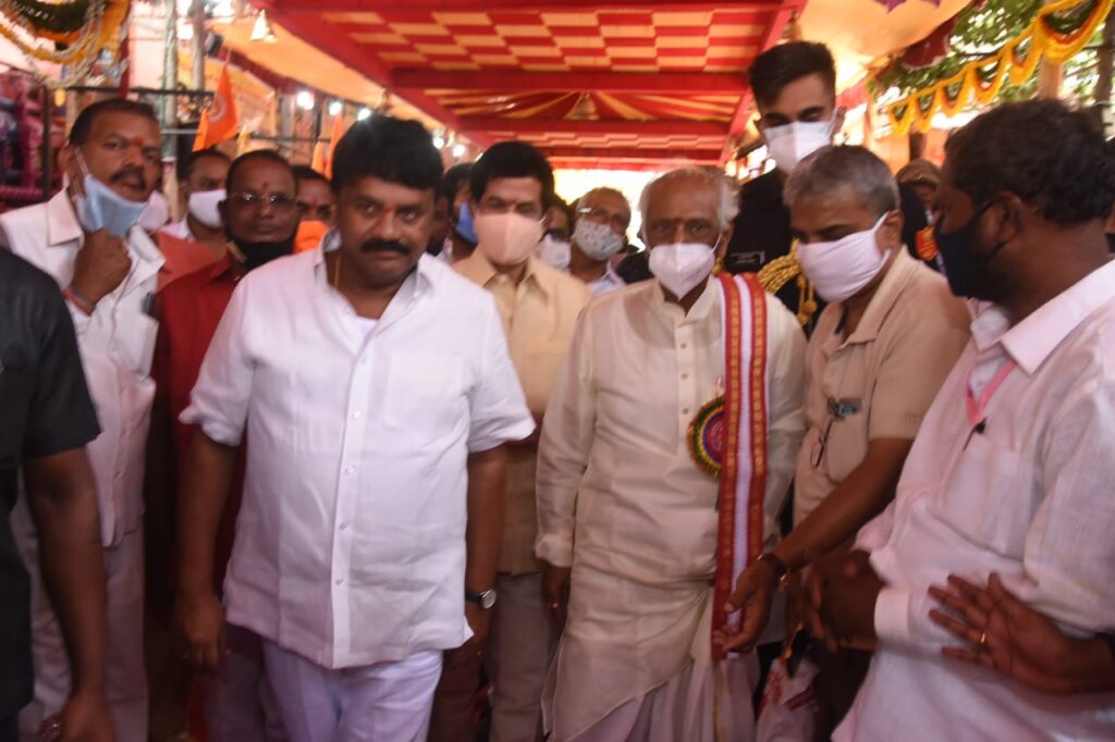 ఆర్.బి.ఎం డెస్క్ హైదరాబాద్: సికింద్రాబాద్ ఉజ్జయిని మహంకాళి అమ్మవారిని దర్శించుకోవడానికి వెళ్లిన హర్యానా గవర్నర్ బండారు దత్తాత్రేయ, బీజేపీ చేవెళ్ల పార్లమెంట్ ఇంచార్జి బి.జనార్దన్ రెడ్డి గారిని రాష్ట్ర మంత్రి తలసాని శ్రీనివాస్ ఘనంగా స్వాగతం పలికి వారికీ అమ్మవారిని దర్శనం చేయించారు. సికింద్రాబాద్ ఉజ్జయిని మహంకాళి బోనాల ఉత్సవాలు కన్నుల పండువగా జరుగుతున్నాయి. ఉదయం నుండి భక్తులు పెద్ద ఎత్తున బారులు తిరి అమ్మవారికి బోనాలు సమర్పించుకుంటూ అమ్మవారిని దర్శించుకుంటున్నారు.ఈ నేపథ్యంలో బి.జనార్దన్ రెడ్డి మీడియాతో మాట్లాడుతూ అమ్మవారిని దర్శించుకోవడానికి వచ్చే భక్తులు తప్పనిసరిగా కోవిడ్ నిబంధనలను పాటించాలని అయన అన్నారు.కోవిడ్ ఇంకా పూర్తిగా నశించలేదని దాని పట్ల ప్రజలు నిర్లక్ష్యం వహించకూడదని జనార్దన్ రెడ్డి ప్రజలను కోరారు. కరోనా మహమ్మారిని తరిమికొట్టాలని అమ్మవారిని ప్రార్ధించానని జనార్దన్ రెడ్డి అన్నారు. రాష్ట్ర ప్రజలందరికి బోనాల పండగ శుభాకాంక్షలు తెలియజేసిన చేవెళ్ల పార్లమెంట్ ఇంచార్జి బి.జనార్దన్ రెడ్డి తెలియజేశారు.