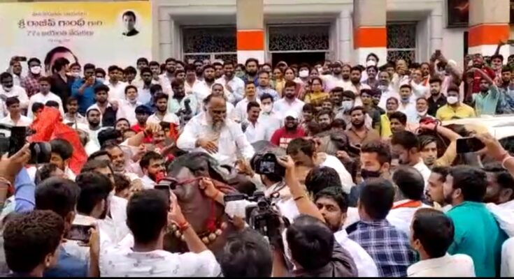 గాంధీభవన్ లో సదరు ఉత్సవాల్లో దున్నపోతుపై కూర్చున్న జగ్గారెడ్డి..