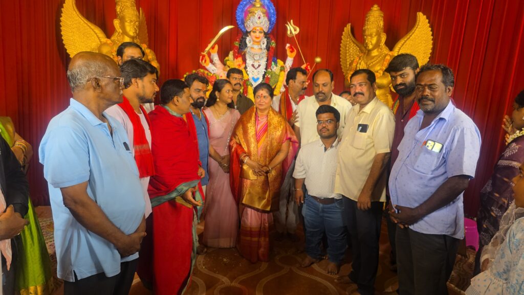 హైదరాబాద్, సెప్టెంబర్ 27: ఓల్డ్ బోయిన్ పల్లిలోని శివ దుర్గ ఎల్లమ్మ తల్లి సమేత దేవస్థానంలో నవరాత్రి ఉత్సవాలు భక్తిశ్రద్ధలతో కొనసాగుతున్నాయి. ఈ సందర్భంగా తెలంగాణ రాష్ట్ర డిప్యూటీ ముఖ్యమంత్రి భట్టి విక్రమార్క సతీమణి మల్లు నందిని శనివారం అమ్మవారి మండపాన్ని సందర్శించి ప్రత్యేక పూజలు చేశారు.