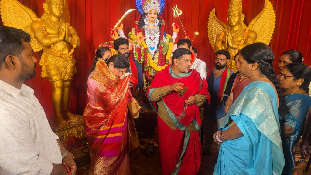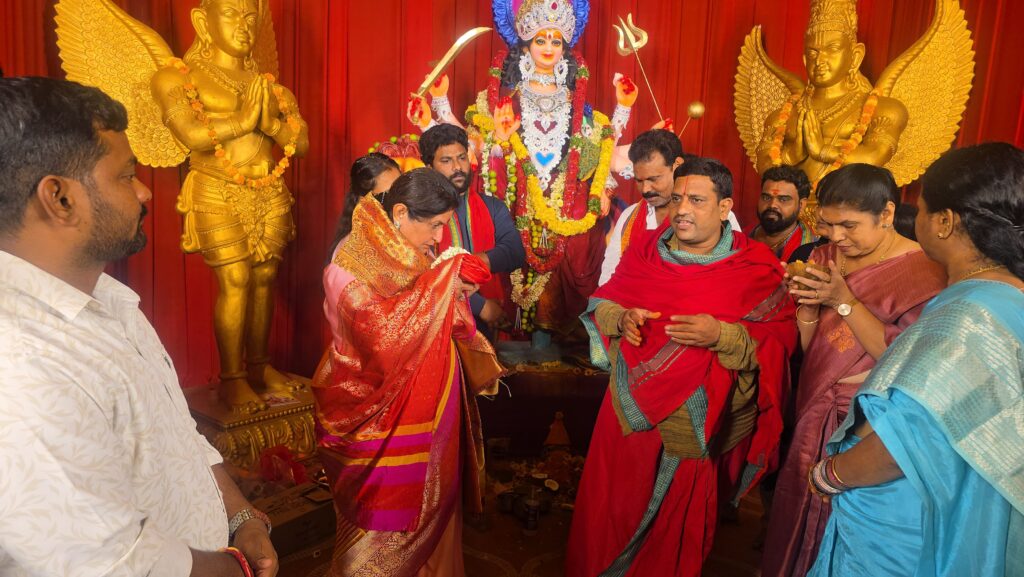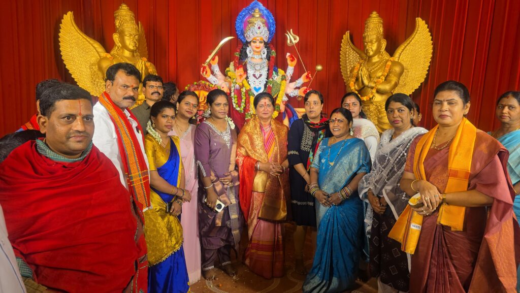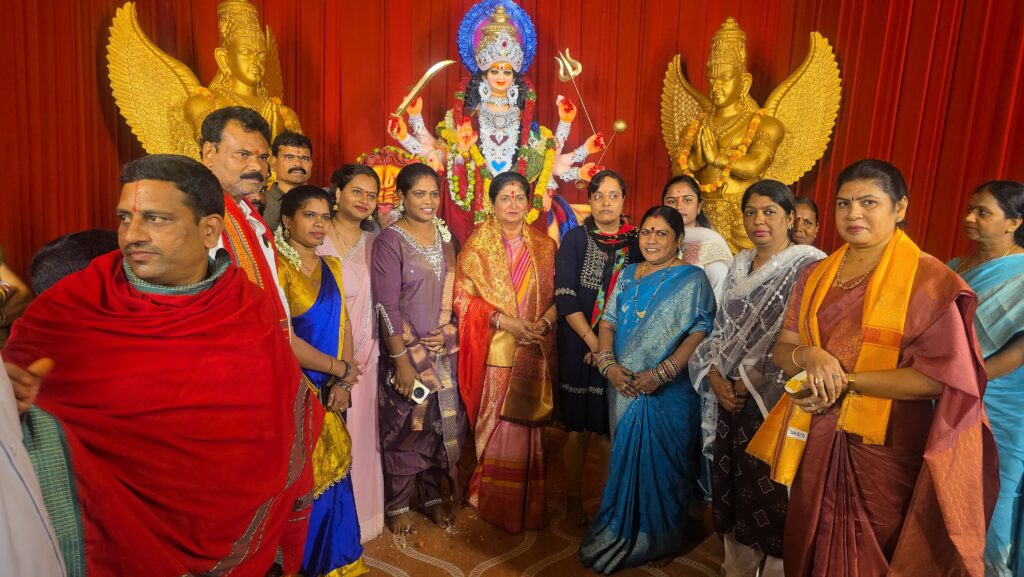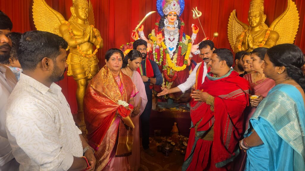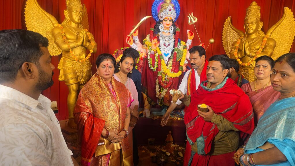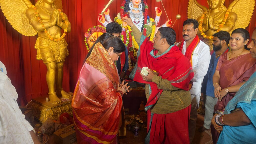 హైదరాబాద్, సెప్టెంబర్ 27: ఓల్డ్ బోయిన్ పల్లిలోని శివ దుర్గ ఎల్లమ్మ తల్లి సమేత దేవస్థానంలో నవరాత్రి ఉత్సవాలు భక్తిశ్రద్ధలతో కొనసాగుతున్నాయి. ఈ సందర్భంగా తెలంగాణ రాష్ట్ర డిప్యూటీ ముఖ్యమంత్రి భట్టి విక్రమార్క సతీమణి మల్లు నందిని శనివారం అమ్మవారి మండపాన్ని సందర్శించి ప్రత్యేక పూజలు చేశారు.