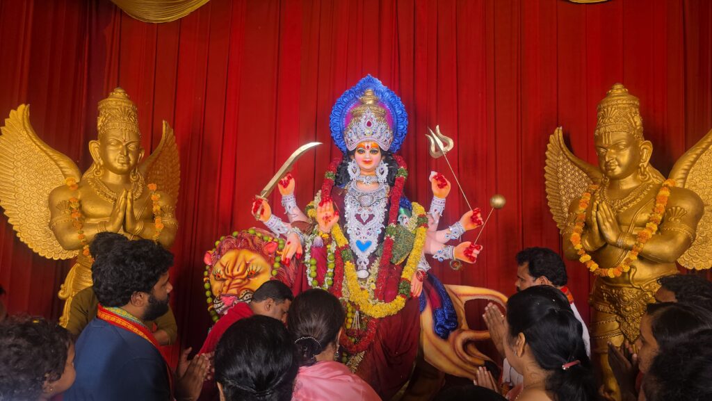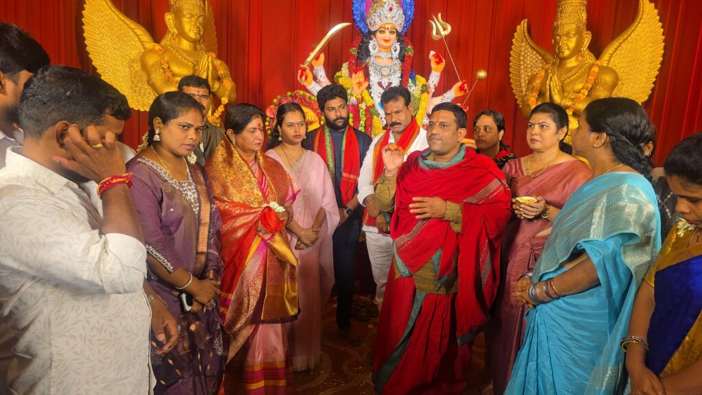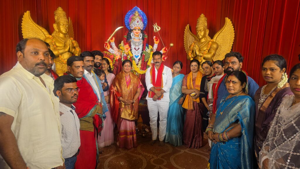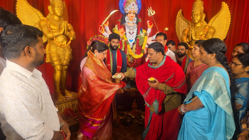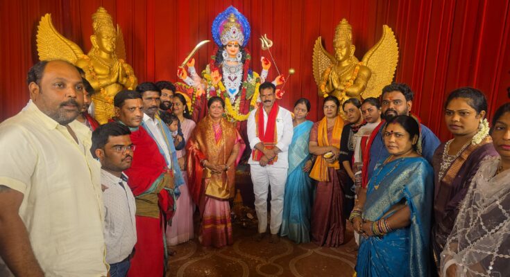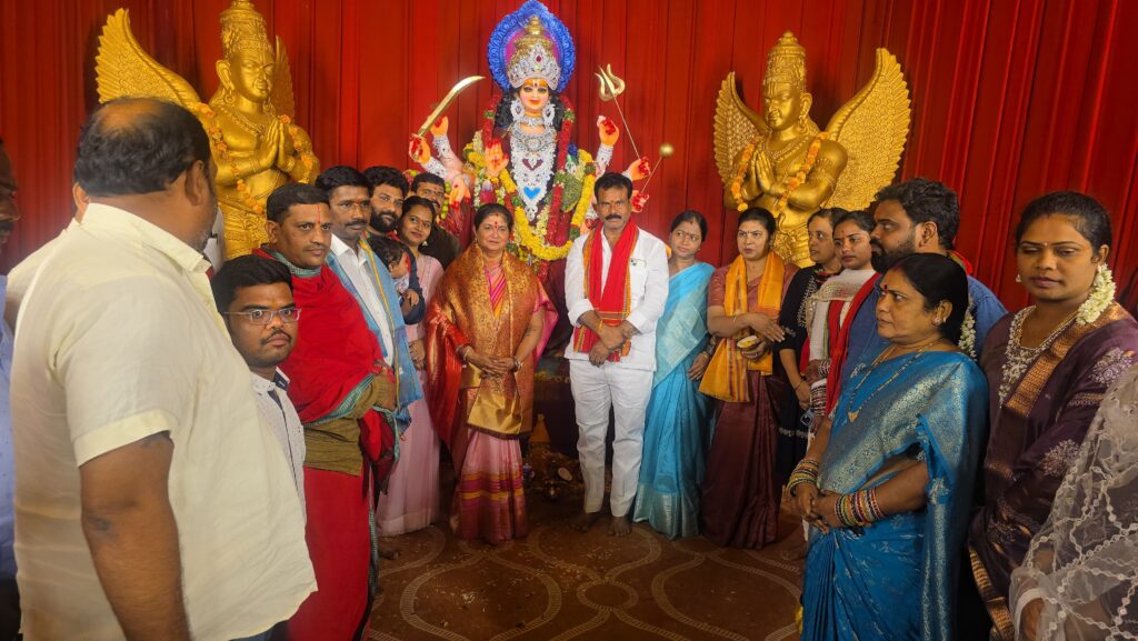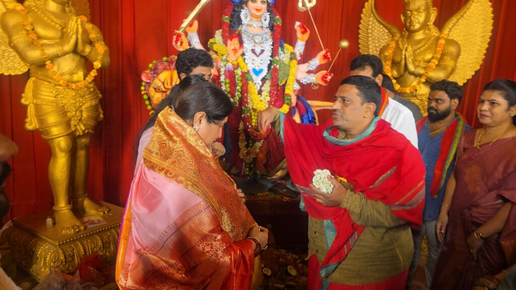హైదరాబాద్, సెప్టెంబర్ 27: ఓల్డ్ బోయిన్ పల్లిలోని శివ దుర్గ ఎల్లమ్మ తల్లి సమేత దేవస్థానంలో నవరాత్రి ఉత్సవాలు భక్తిశ్రద్ధలతో కొనసాగుతున్నాయి. ఈ సందర్భంగా తెలంగాణ రాష్ట్ర డిప్యూటీ ముఖ్యమంత్రి భట్టి విక్రమార్క సతీమణి మల్లు నందిని శనివారం అమ్మవారి మండపాన్ని సందర్శించి ప్రత్యేక పూజలు చేశారు.