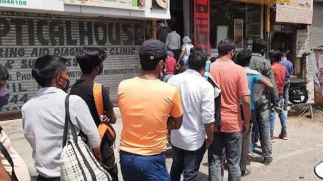 ఆర్.బి.ఎం డెస్క్ హైదరాబాద్: రాష్ట్రంలో కరోనా వ్యాప్తి అధికం అవ్వడంతో రాష్ట్ర ప్రభుత్వం కీలక నిర్ణయం తీసుకుంది. పది రోజులపాటు రాష్ట్రంలో లాక్ డౌన్ విధిస్తు ఉతర్వులు జారీచేసింది. ఇది ఇలా ఉంటె లాక్ డౌన్ అంశం తెరపైనికి వచ్చిన కొద్దీ క్షణాల్లోనే మందు బాబులు వైన్ షాప్స్ వద్ద బారులు తీరారు. నగరంలో ఉన్న ప్రతి వైన్ షాప్ వద్ద ప్రజలు మద్యం కోసం ఎగబడ్డారు. ఈ క్రమంలో మందు బాబులు నిబంధనలకు విరుదంగా మాస్కులు లేకుండా భౌతిక దూరం పాటించకుండా గుంపులు గుంపులుగా గుమ్మిగూడి మద్యం కొనుగోళ్ళకు ఎగబడ్డారు. రాష్ట్ర ప్రభుత్వం ఉదయం 6 నుండి 10 గంటలవరకు సడలింపు ఇస్తున్నటు తెలుస్తోంది కాగా వాటిలో వైన్ షాప్స్ ఉంటాయో ఉండవో మరికాసేపట్లో తెలియనుంది.