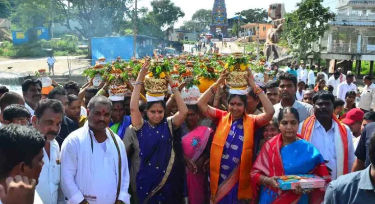 మెదక్ : ఏడుపాయలలో టీఆర్ఎస్ ఎమ్మెల్సీ కల్వకుంట్ల కవిత, ఎమ్మెల్యే పద్మా దేవేందర్ రెడ్డి, రాష్ట్ర మహిళా కమిషన్ చైర్ పర్సన్ సునీతా లక్ష్మారెడ్డి శనివారం పర్యటించారు. ఏడుపాయల వన దుర్గామాతను దర్శించుకున్నారు. ఈ సందర్భంగా కవిత అమ్మవారికి పట్టు వస్త్రాలు, బంగారు బోనం సమర్పించి మొక్కులు చెల్లించుకున్నారు. అనంతరం ప్రత్యేక పూజలు నిర్వహించారు. అమ్మవారి సన్నిధిలో కవిత, పద్మాదేవేందర్ రెడ్డి గాజులు తొడిగించుకున్నారు. అనంతరం ఎమ్మెల్సీ కవిత మాట్లాడుతూ.. 100 మంది ఆడపడుచులతో కలిసి అమ్మవారికి బోనాలు సమర్పించామని తెలిపారు. ఏడు పాయల ఆలయానికి ప్రత్యేక చరిత్ర ఉందన్నారు. మల్లన్న సాగర్ అభివృద్ధితో ఈ ప్రాంతం కూడా అభివృద్ధి చెందిందన్నారు